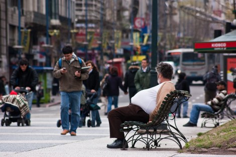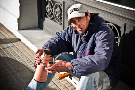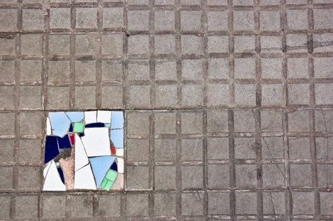 En su ciudad vieja, algún que otro solitario baldosín de colores alegra la mañana a los cabizbajos mientras la gente se apura para no llegar tarde al trabajo con su inseparable mate humeante en la mano y el termo bajo el brazo.