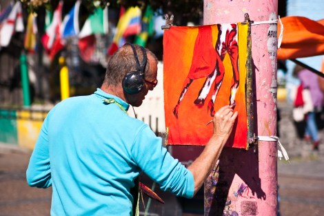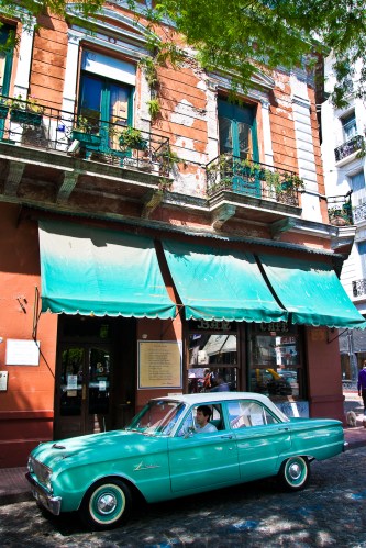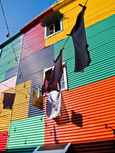 La Boca; el barrio levantado por inmigrantes genoveses a finales del S.XIX es un conglomerado de casas de uralita pintadas con vistosos colores aprovechando los restos de pintura de los navíos que en el cercano puerto se reparaban. Caminito es su calle más conocida, convertida hoy en el paradigma del negocio turístico porteño. Es sus aceras se apostan vendedores de souvenirs que defienden su territorio con recelo entre las terrazas de los restaurantes con espectáculo de tango. Maradonas, Gardeles, Che Guevaras y Dieguitos y Mafaldas se disputan el trono de la argentinidad estampados en camisetas, tazas, imanes, llaveros y demás.