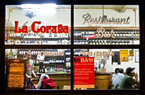 5. Como no podía ser de otra manera, el bar La Coru es uno de los 500 lugares queribles de (no tan) Buenos Aires. Aún así, me pido la de la silla y la mesa del Dorrego, y, claro está, Maneras de vivir II. Al fin y al cabo, por algo las mejores mesas siempre fueron los portales o ventanas de la izquierda. Merci!