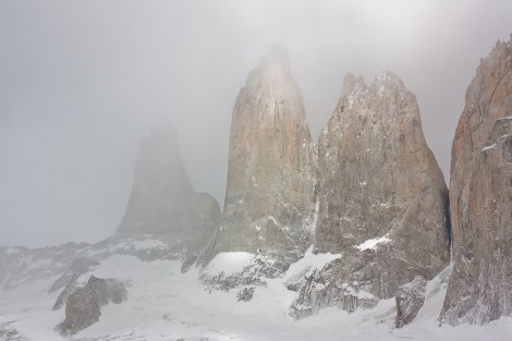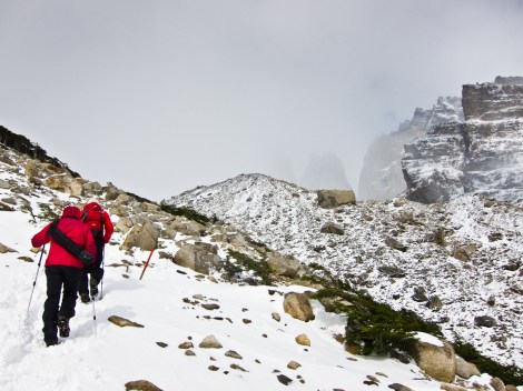 La verdad, la cosa no pintaba nada bien. A unos 5 kilómetros del refugio la tempestad de nieve arreciaba y, aunque en ningún momento dudamos de que alcanzaríamos nuestro destino, nos preguntábamos si esas nubes se levantarían al día siguiente, si nos dejarían ver las Torres, si, en definitiva, el esfuerzo y el sufrimiento bajo la tormenta de nieve, valdrían la pena.