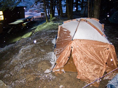 Y aquí nuestra tienda… como ven, aún con claros síntomas de amorfismo aguantó bien la nevada de la primera noche