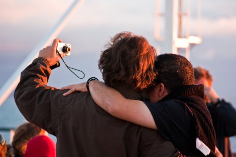 Nos dirigimos al mostrador con nuestra reserva clase ‘CCC’, o lo que es lo mismo, un camarote sin ventanas para 42 personas durmiendo en literas. Como nos dijo alguien: un Gran Hermano a bordo. Muy majos debimos parecerle al chico que asignaba las literas cuando, al cabo de cinco minutos, ya nos ofrecía un ‘upgrade’ a una cabina con cuatro camas sin ventana que debíamos compartir con una anciana alemana que, según él, tenía una pata en el otro barrio. No sonaba muy divertido pero al menos nos librábamos de dormir en el camarote de los Hermanos Marx. Cinco minutos más de charla y ya nos estaba ofreciendo un camarote con cuatro camas y ventana, compartido con otra alemana, pero en este caso joven. ¡Qué alegría, qué alboroto, otro perrito piloto!