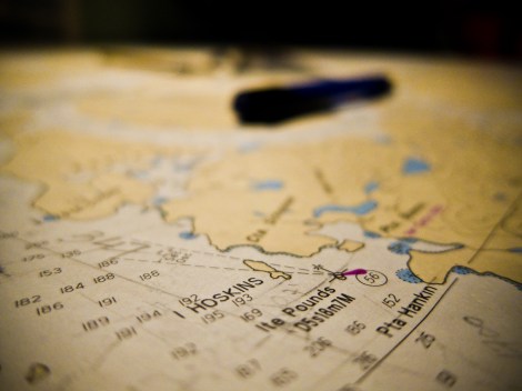 La vida a bordo transcurría tranquila, solo alterada por los tempranos horarios de desayuno, comida y cena que dictaba el capitán. El puente de mando se hallaba siempre abierto y nos dejábamos caer por allí cada vez que pasábamos algún estrecho o nos acercábamos a algún glaciar. La atenta tripulación nos enseñó los instrumentos de navegación y cartografía. Al margen de eso y de alguna charla organizada, las horas de tedio eran las más y se consumían entre tertulias, lecturas y partidas de cartas.