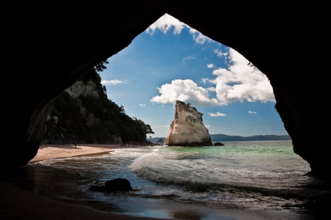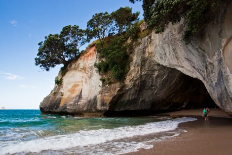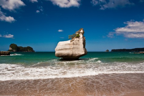 Un poco más al norte se encuentra la cueva ‘Cathedral Cove’ que une las dos partes de una preciosa playa de arena blanca. La cueva en sí ya es bastante espectacular pero si al otro lado se le añade un peñasco de roca blanca en mitad del mar y se busca el ángulo correcto para sacar la foto… ‘voilá!’ se obtiene un buen reclamo para el visitante y que el puesto de helado que está al inicio del camino que lleva a la playa haga su agosto de diciembre a marzo.