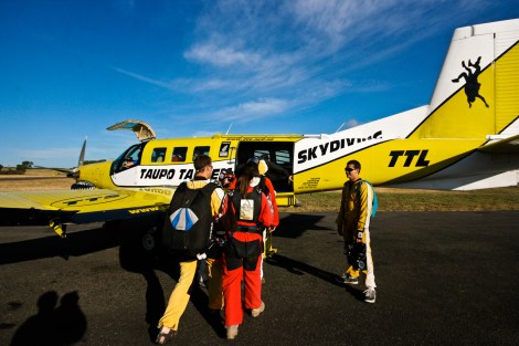 Se levantó la puerta y nos deslizamos hacia ella tragando saliva por última vez. La adrenalina nos mantenía atentos, nerviosos y, por momentos, alejados del miedo. Sentados al borde del avión la posición correcta requería mirar hacia arriba, hacia las nubes que sobrevolaban el Lago Taupo cuya visión aportaba una extraña y efímera sensación de calma. Sin previo aviso nos empujaron al vacío.