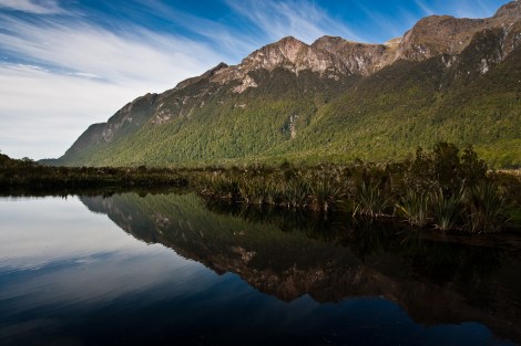 Al atardecer, Marcial regresó desde el camping donde pasaríamos la noche hasta Milford para fotografiar de nuevo su paisaje. No duró ni quince minutos y regresó sin poder ver el imponente fiordo y el Mitre Peak con la mejor luz del día. Aquellas malditas moscas picadoras agotan la paciencia de cualquiera. Al día siguiente, hartos de aquella ingrata compañía, partimos a primera hora aplastando con toda nuestra ira cada una de las osadas –o estúpidas– moscas que se habían colado en nuestro coche.