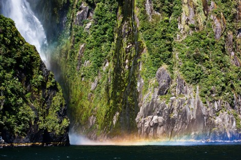 Tras cubrir 114 kilómetros de la ruta 94 en unas dos horas y media llegábamos a nuestro destino, el pequeño pueblo (si se le puede llamar así a un aparcamiento y a un embarcadero) de Milford Sound, en el final de uno de los fiordos más profundos del país. Milford tiene la ventaja y la desventaja de ser el único entre las decenas de fiordos que hay al que se puede llegar por carretera. Así, lo difícil no es llegar sino sentir que uno se halla en una de las regiones más aisladas del país cuando a media mañana ve llegar por la carretera una caravana de autobuses atestados de turistas.