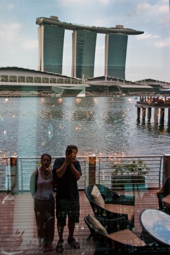 Así nos recibió Singapur tras un viaje un tanto accidentado desde Australia. En Darwin, un rayo cayó sobre el finger del avión dejando el sistema informático K.O. durante tres horas. Llegamos a Singapur a última hora del día, cansados, sudorosos y sedientos por lo que decidimos ir a tomar una cerveza fresquita al bar de al lado. Era la primera vez en unas cuantas semanas que íbamos a tomar una cerveza pero la merecíamos y el precio, por fin, no iba a ser un impedimento.