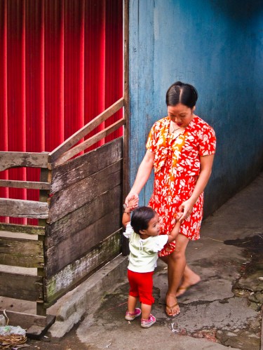 Mukani se desvivió para que le contratáramos el tour por el parque nacional. ‘Hace 23 días que no veo a ningún turista en la ciudad’ nos reconoció. ‘Mi madre ha rezado todos estos días por mi. Ha rezado para que apareciera algún turista que me diera trabajo y, gracias a ella, os encontré esta mañana’… Nos ofreció el mejor precio posible para recorrer el parque durante tres días en un Klotok (embarcación típica de la zona). Después de muchas horas de idas y venidas, llamadas, visitas a diferentes agencias y demás nos estrechamos la mano y pagamos lo convenido. Mukani estaba feliz. Entre gestión y gestión nos había llevado a comer a un restaurante local y, por la tarde, con todo ya cerrado para el día siguiente, nos acompañó por la ciudad enseñándonos los rincones más interesantes de Banjarmasin que, de primeras, parecía más bien una ciudad desordenada y sucia como tantas otras en Indonesia. ‘La verdad, no tengo nada mejor que hacer’ nos dijo. Cuando ya caía la noche y pensábamos que había llegado el momento de despedirnos de Mukani, aún quedaba otra cosa por hacer: ir a su casa a conocer a su madre, la que había rezado para que nosotros apareciéramos. No nos pudimos negar.