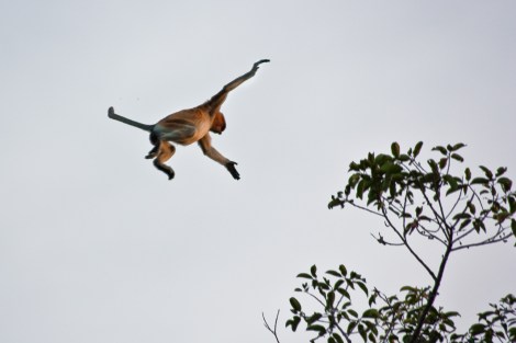 Tras una hora de navegación divisamos numerosos monos narigudos que jugueteaban en los márgenes del río, colgándose de rama en rama y persiguiéndose entre ellos. Esta especie de monos sólo se encuentra en Borneo, la isla que comparten Indonesia, Malasia y Brunei. Un poco más adelante, otros monos. Esta vez los macacos grises que, con una increíble agilidad, eran capaces de saltar al klotok para robar cualquier pedazo de comida o fruta que estuviese a su alcance.