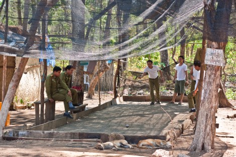 La tranquilidad era tal que podríamos decir que la vida en aquella isla fluía con el ritmo lento de las aguas del Mekong. Podríamos, pero sería pasarse. El ritmo era aún más lento. Y se contagiaba. En ocasiones era necesario toser o hacer algún ruido para despertar a quien debía cobrarnos la coca-cola que acabábamos de sacar de la nevera de algún bar al pie del camino. ¿Comer?, sí claro, toma asiento que en media horita paso a ver qué te apetece y luego, si eso, nos ponemos a cocinar. La tranquilidad era tal que, sentados en la terraza sobre el río, oíamos cuando la cocinera, al otro lado del camino de tierra, metía los rollitos en el aceite hirviendo. No había nada que hacer. Adaptarse o morir.