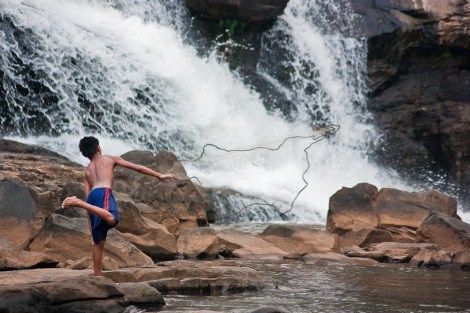 Planeamos el recorrido por el Bolaven Plateau como un ‘loop’, un recorrido circular que nos devolvería a Pakse cuatro días después. El primer día nos plantamos en Tad Lo, un pueblo cuya única calle acababa en unas cascadas con forma escalonada donde pudimos refrescarnos después de un día asfixiante con un sol de justicia. Aún no lo sabíamos pero en Tad Lo íbamos a decir adiós al mundo civilizado para el viajero, aquél en el que aún queda alguien que habla inglés.