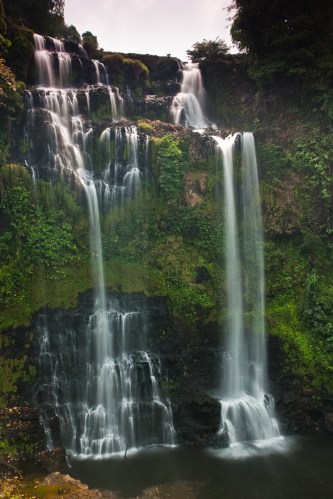 Entre las cicatrices causadas por las bombas en esos terrenos seguimos nuestra ruta parando en diversas cascadas que aparecían a un lado y otro del camino, por desgracia, muchas de ellas estaban bastante secas por la estación. La mejor que vimos no aparecía ni en la guía. Fue una sorpresa, un refrescante premio a la perseverancia de los cuatro.