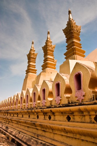 2. Estoy flipando con la primera foto de la pagoda de That Luang: parece un tablero de ajedrez gigante!! O quizá será que no debo leer blogs tan temprano…
