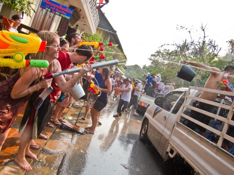 Las guerras de agua callejera son pues una transgresión de la tradición que para muchos devotos budistas es una desviación popular casi inaceptable. Para mucha otra gente es sólo un divertimento que alborota la ciudad y hace que tanto niños como mayores disfruten felicitándose el año nuevo, con mucha alegría y sin ninguna maldad ni ofensa contra su credo. Para el visitante es una oportunidad inmejorable para relacionarse con los locales, conocer a otros viajeros y estar tres días a salvo del bochornoso calor a base de remojones continuos.