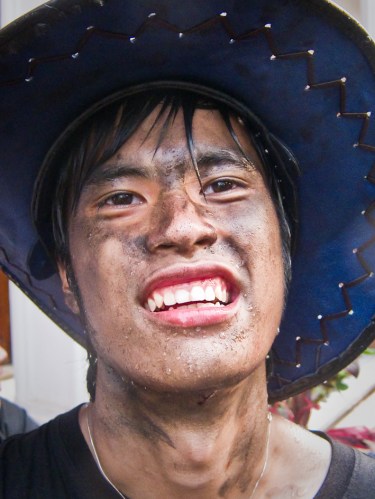 Al cubo a lavarse… a ver, a recargar ‘¿dónde está ese niño?’ Ya da igual… vendrá otro y te pintará la cara de un manotazo de verde, rojo, naranja ‘¡¡¡Happy Pi Mai!!!’ o del más temido: el negro, una especie de grasa de motor a prueba de los mejores jabones locales e internacionales…