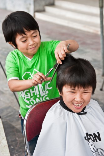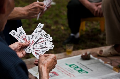 La incesante actividad de ese barrio nos empezó a enseñar lo trabajador que es el pueblo vietnamita, algo de lo que ya nos habían hablado. Antes de que salga el sol ya hay negocios abiertos que continúan con la actividad hasta bien entrada la noche. Por lo general, el vietnamita empieza pronto su jornada y su único descanso se encuentra en las omnipresentes mesitas de plástico rodeadas de pequeños taburetes donde se sientan a conversar mientras toman un rápido plato de arroz o fideos. Algunos encuentran tiempo para echar una partida rápida a algunos de sus juegos tradicionales, una especie de juego de cartas, damas o ajedrez incomprensible para nosotros. Después, vuelta al tajo hasta altas horas de la noche. Meses antes habíamos oído que ‘los vietnamitas cultivan el arroz mientras los camboyanos los miran y los laosianos, simplemente, los escuchan’ y, visto lo visto, algo de cierto puede haber en ese dicho.