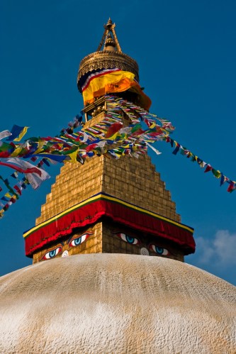 Boudanath y su estupa nacieron en un cruce de caminos en medio de una de las principales rutas comerciales entre India y Tíbet. Los comerciantes y antiguos transportistas paraban en Boudanath para rezar. Los que se dirigían al Norte solicitaban la ayuda de Buda para cruzar los altos pasos del Himalaya y los que viajaban al Sur desde Tíbet podían darle las gracias tras el penoso camino por las montañas.
