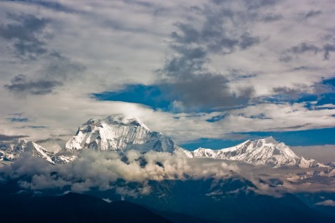 ‘¿Qué hay detrás de esa nube? ¿Una roca?’… ‘No, no. No puede estar tan alto’. Pero sí lo estaba. Un inmenso pico apareció sobre la cortina gris pero muy por encima de lo que nosotros esperábamos. Estábamos frente al Dhaulagiri, 8.167 metros de roca. La séptima montaña más alta del mundo. Pero eso nos daba igual, su visión era impresionante. De hecho, estábamos ante la montaña más alta que jamás habíamos visto.