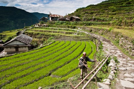 Los caminos por los que transitábamos apenas tenían, en los tramos más cómodos, dos metros de ancho pero para las gentes de aquellas pequeñas villas aquello no era el viejo camino que te llevaba al pueblo de al lado sino su particular autopista. Durante cientos de años, aquellas poblaciones habían vivido mucho más aisladas que ahora. La llegada del turismo y del trekking hizo que los antiguos senderos de lodo y piedras se fuesen convirtiendo en caminos empedrados que facilitaron la llegada de los suministros a las aldeas más remotas.