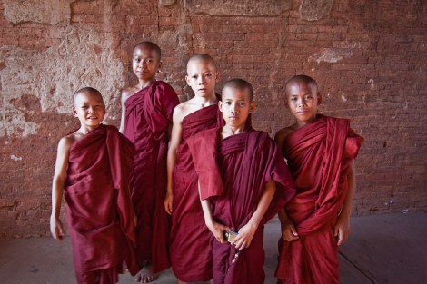 Monjes en Bagan, Myanmar
