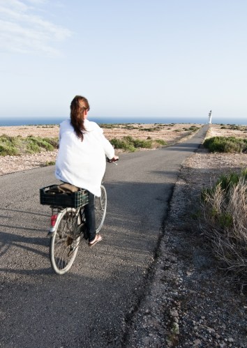 Un restaurante a pie de playa puede ser un buen lugar para comer. Un camino de tierra y arena, siempre más largo y tortuoso de lo esperado, me acerca al mar. La gastronomía de Formentera es sencilla y humilde, basada en los productos de la tierra, en lo que se tiene a mano y en lo que crece bien. Destacan pescado seco, sal, miel, queso, higos y vino. Actualmente sólo una barca se dedica a capturar rayas, cazones y musolas para secarlas al sol y conservarlas en aceite de oliva. Con ese pescado seco se prepara la ensalada pagesa, uno de los platos típicos de la isla. De postre, para mí un Flaó que es una tarta de queso con hierbabuena y limón, contundente pero de sabor muy refrescante. El licor de hierbas de la isla ayuda a la digestión.