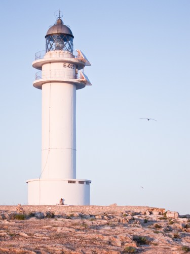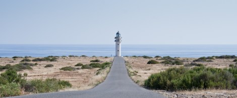 Continúo el camino hacia el oeste y, en Sant Francesc, tomo la carretera hacia el sur para llegar al extremo más meridional de la isla, el Cabo de Barbaria. Paso por zonas con pequeños bosques de pinos y de sabinas. Las más aisladas están tumbadas por la fuerza del viento. De pronto, los muros de piedra, las ovejas, los pequeños campos de trigo y los árboles desaparecen. El paisaje se llena de piedras y matas bajas. La estrecha carretera sigue subiendo hasta que un cambio de rasante me muestra el Faro de Barbaria, rodeado de acantilados. El escenario es aún más impresionante que en La Mola.