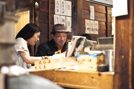 Unas cuantas paradas de metro más allá llegamos a Kagurazaka, un barrio tradicional con pequeños callejones y minúsculos restaurantes donde nos llevaron a cenar. El lugar elegido era una pequeña taberna japonesa de madera. Nos sentamos en una mesa compartida en unos taburetes enanos.